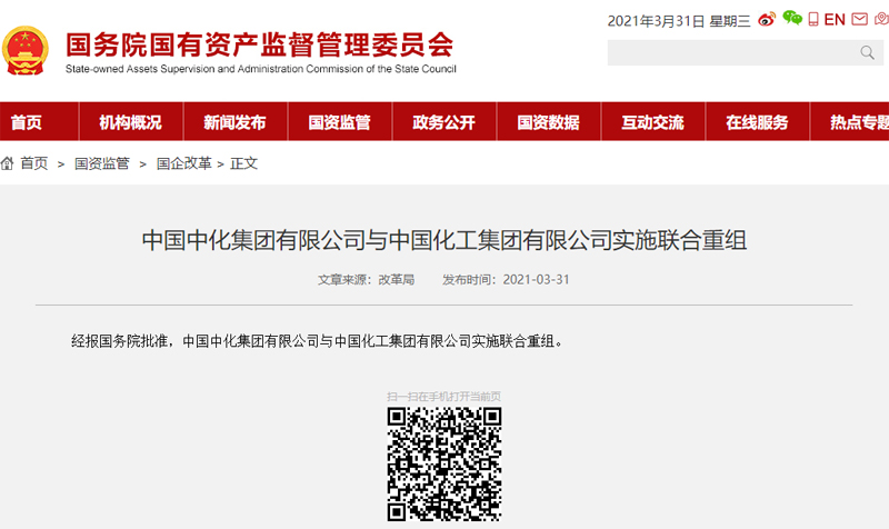 中化集團與中國化工獲準實施聯合重組